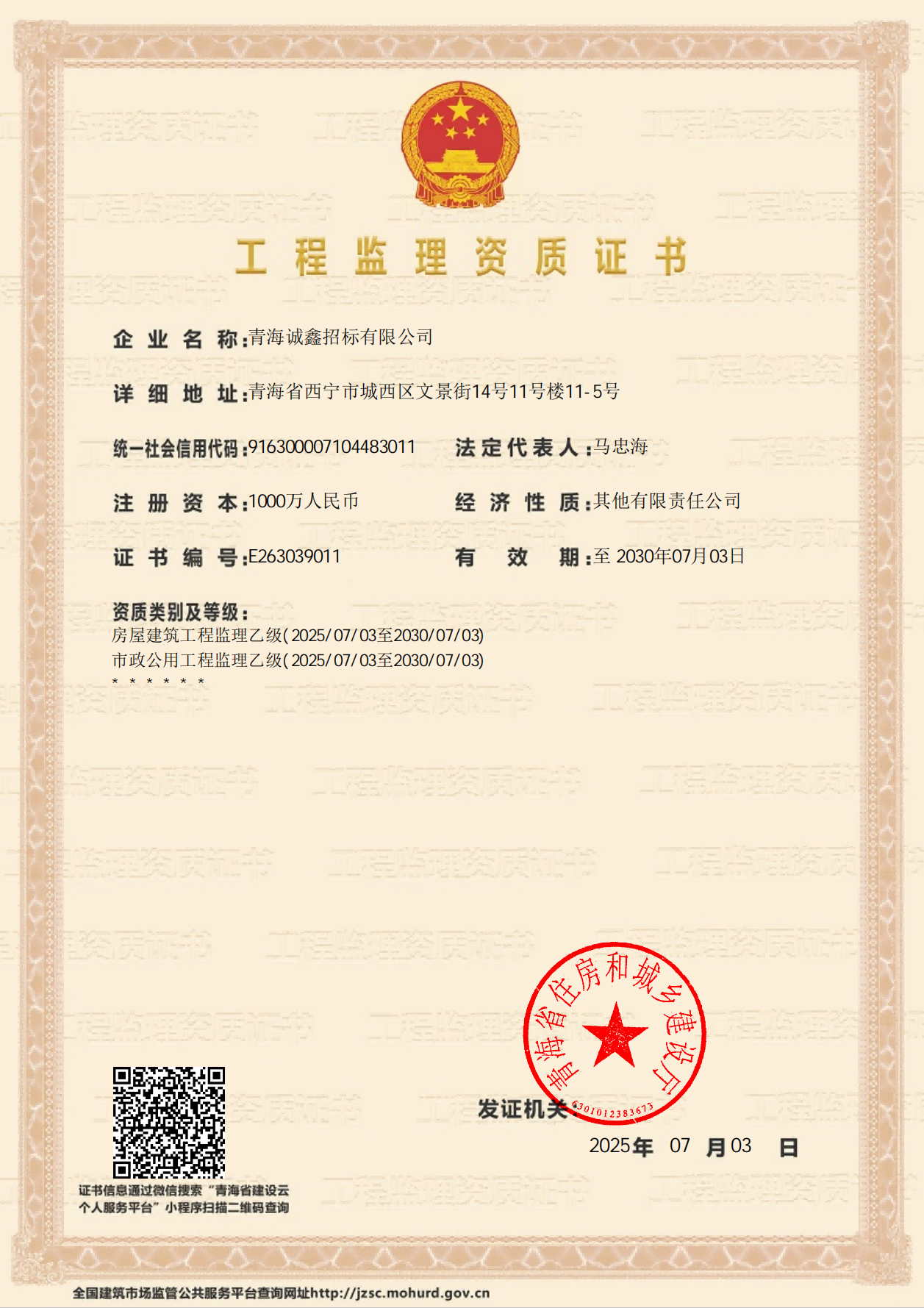 工程監(jiān)理資質(zhì)證書